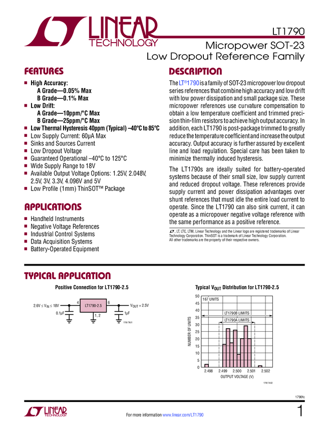 LT1790 Micropower SOT-23 Low Dropout Reference Family