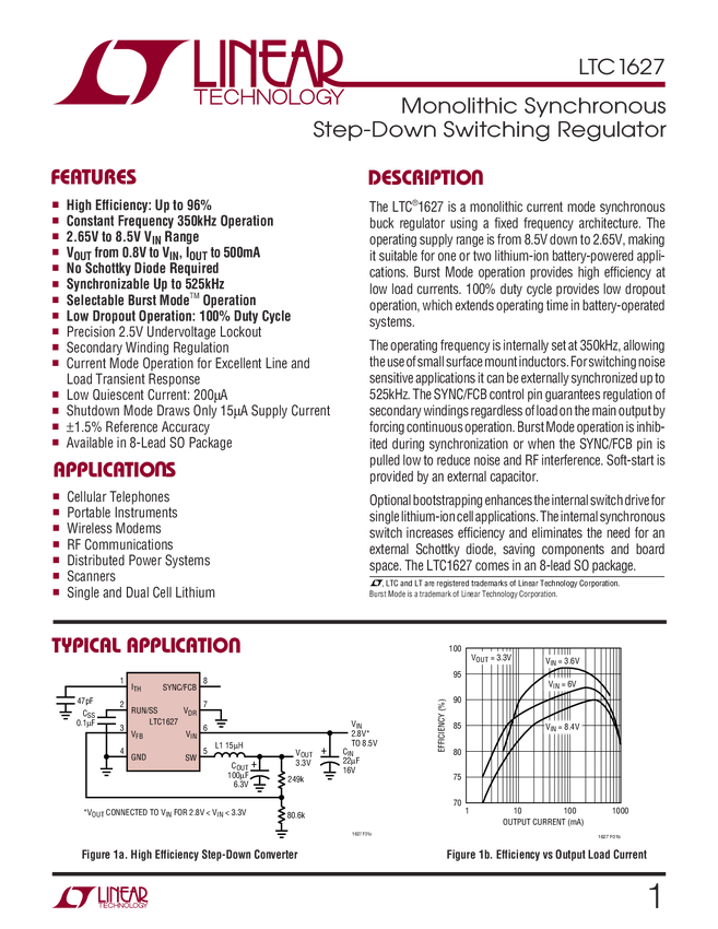 LTC1627 Monolithic Synchronous Step-Down Switching Regulator