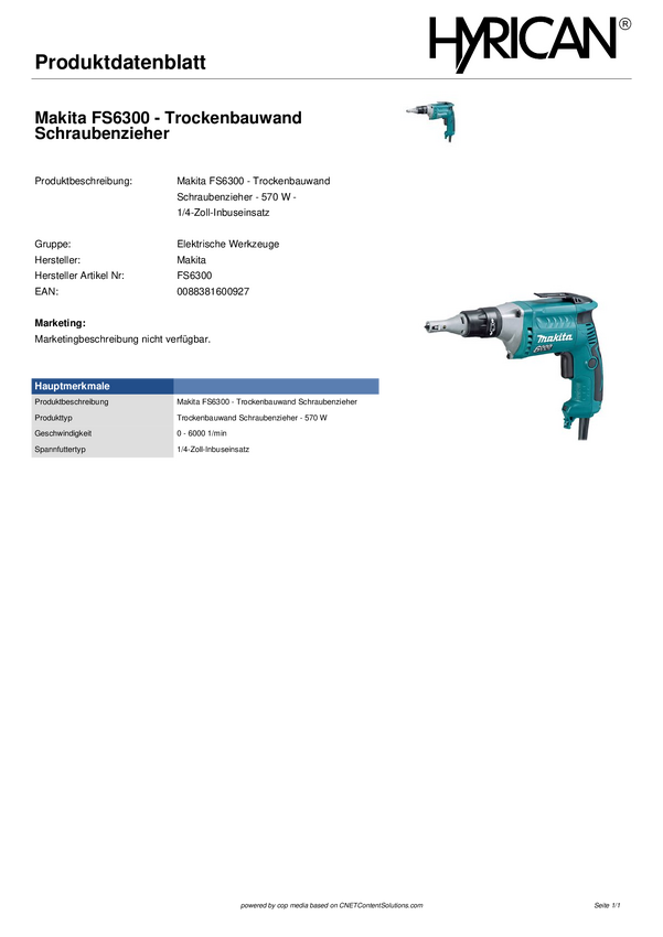 Makita S_0380_3718109 Wkrętak elektryczny FS6300 S_0380_3718109