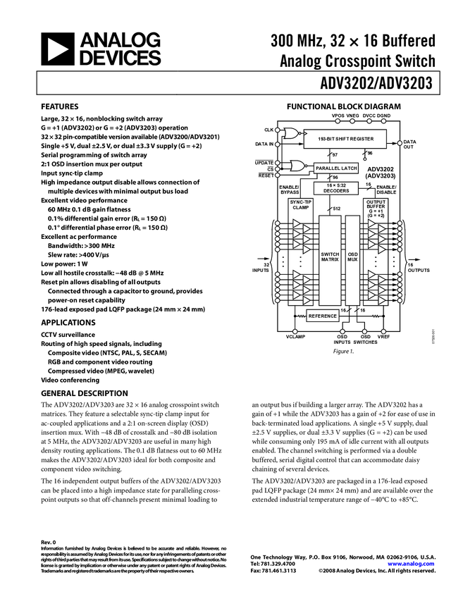 ADV3203 300 MH, 32 × 16 Buffered Analog Crosspoint Switch