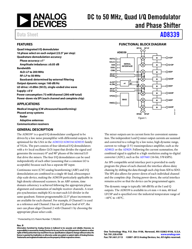 AD8339 DC to 50 MH, Quad I/Q Demodulator and Phase Shifter