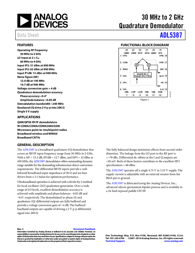 ADL5387 30 MH TO 2 GH Quadrature Demodulator
