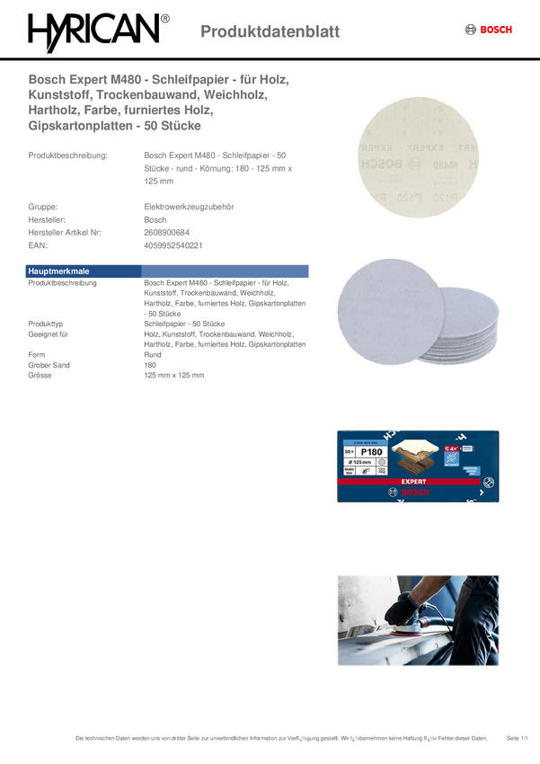 Siatka ścierna do szlifierki oscylacyjnej Bosch Accessories EXPERT M480 2608900684 50 szt.