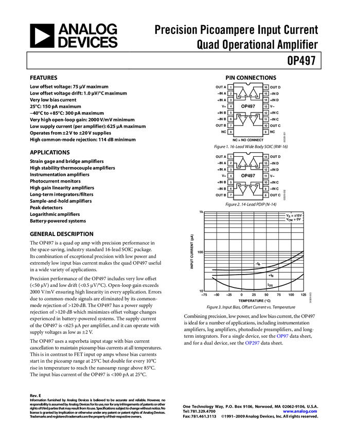 OP497 Precision Picoampere Input Current Quad Operational Amplifier