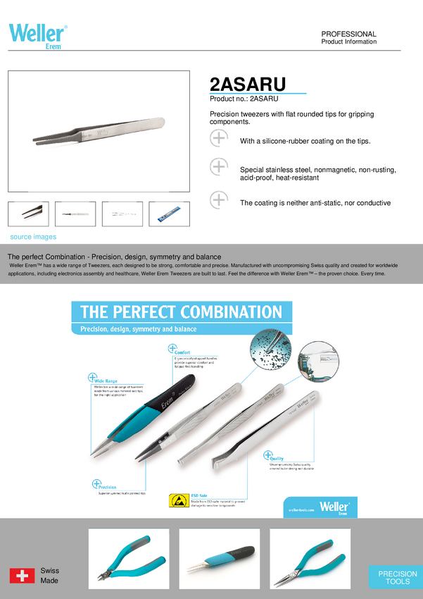2ASARU Pęseta precyzyjna Weller Erem® 2ASARU 120.00 mm