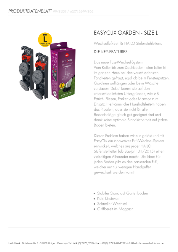 Hailo 9948-001 Zestaw zdejmowanych nóżek EasyClix Garden - rozmiar L. 1 szt.