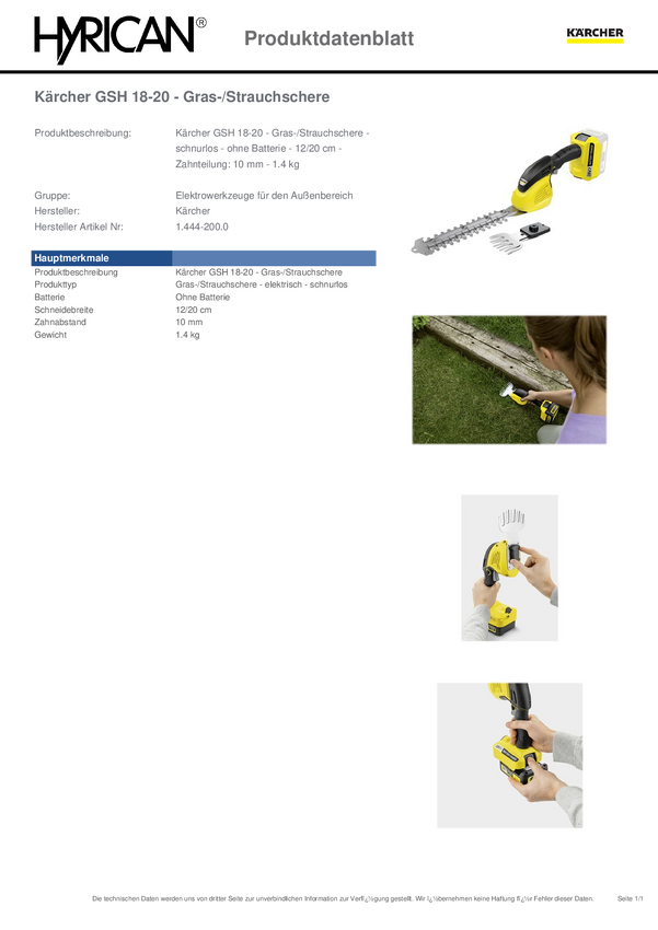 1.444-200.0 Nożyce do trawy, Nożyce do krzewów Kärcher Home & Garden Grasschere GSH...