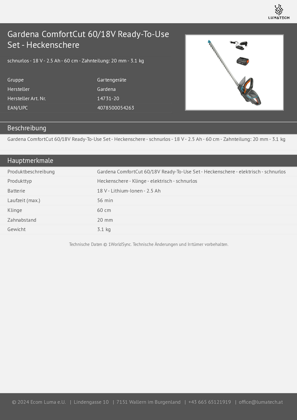 14731-20 GARDENA ComfortCut 60 18V-P4A Ready-To-Use Set akumulatorowy Nożyce do żywo...