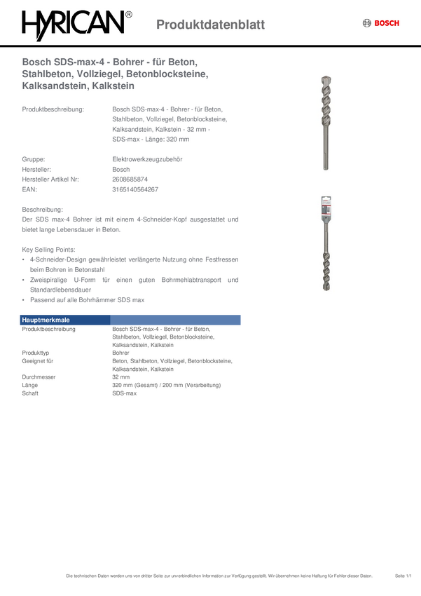 2608685874 Wiertło udarowe Bosch Accessories SDS max-4, 32x200x320mm 2608685874 32 mm...