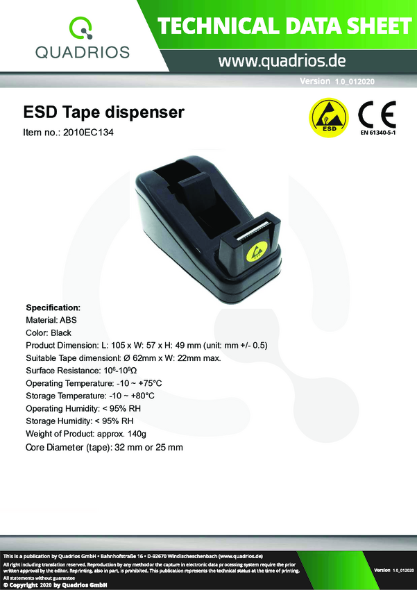 2010EC134 Dyspenser do taśmy ESD Quadrios 2010EC134, 1 szt.