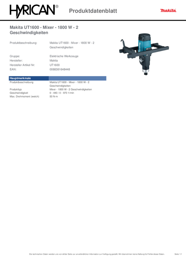 UT1600 Mieszadło Makita S_0380_2567190 UT1600, 1800 W