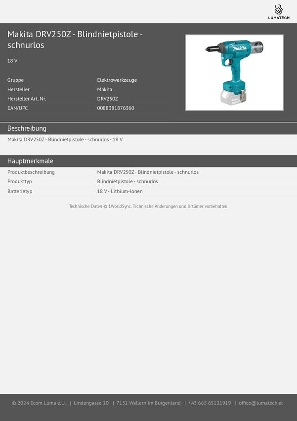 DRV250Z Nitownica do nitów jednostronnych, akumulatorowa Makita S_0380_7457787 DRV2...
