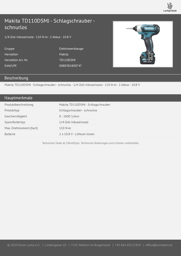 Wkrętarka udarowa akumulatorowa Makita S_0380_2457043 10.8 V 4 Ah