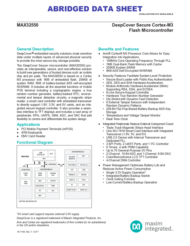 DeepCover Secure Arm Cortex-M3 Flash Microcontroller