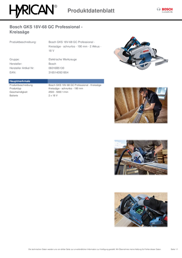 06016B5130 Piła tarczowa akumulatorowa Bosch Professional BITURBO GKS 18V-68 GC+ 2x 5,...