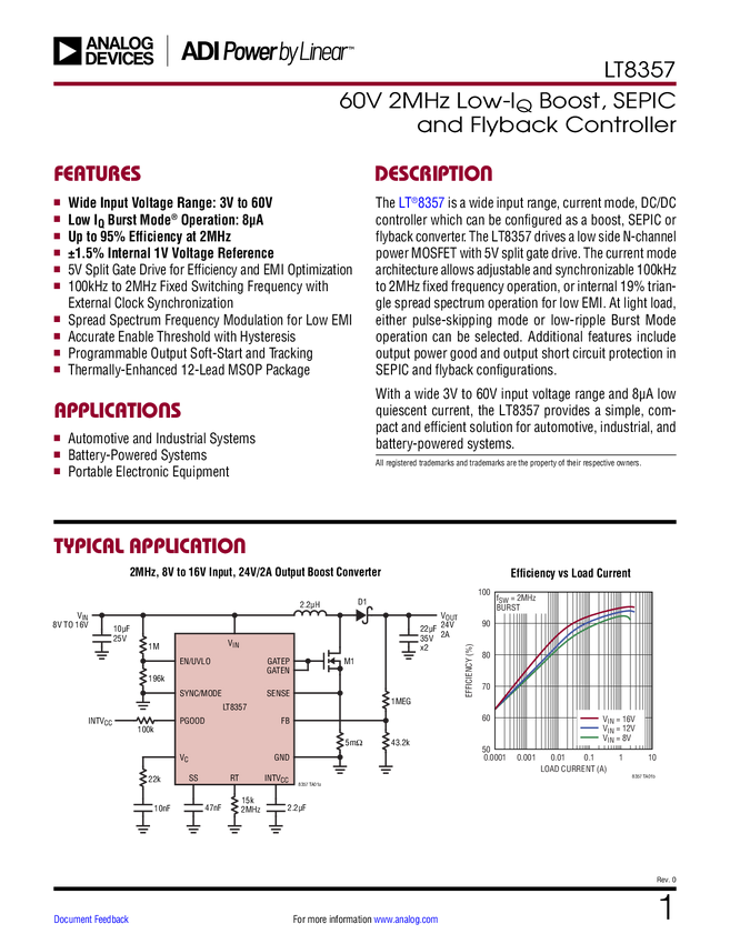 LT8357 60V 2MHz Low-I Boost, SEPIC and Flyback Controller