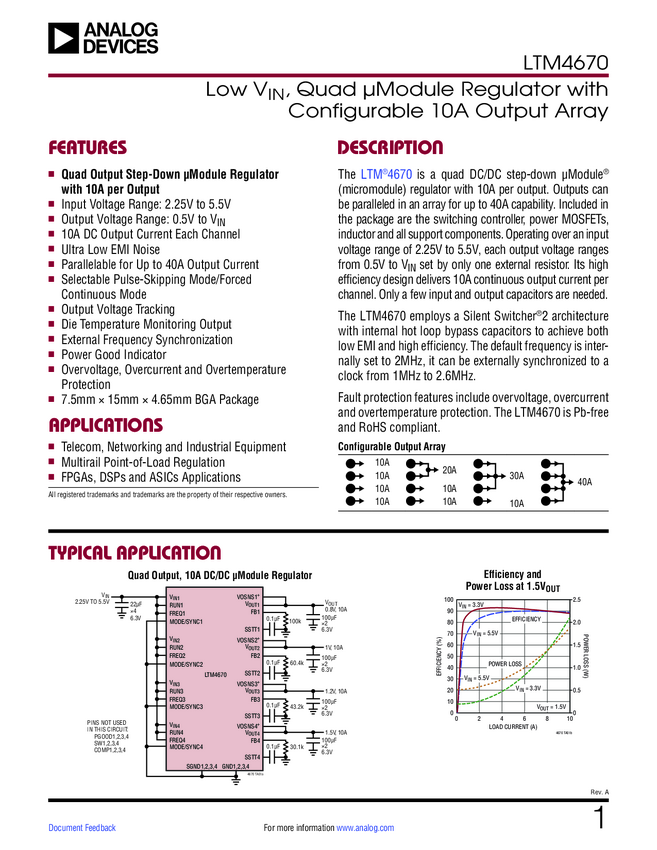 LTM4670 Low V, Quad μModule Regulator with Configurable 10A Output Array