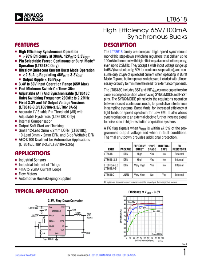 LT8618 LT8618-3.3 LT8618C High Efficiency 65V/100mA Synchronous Bucks