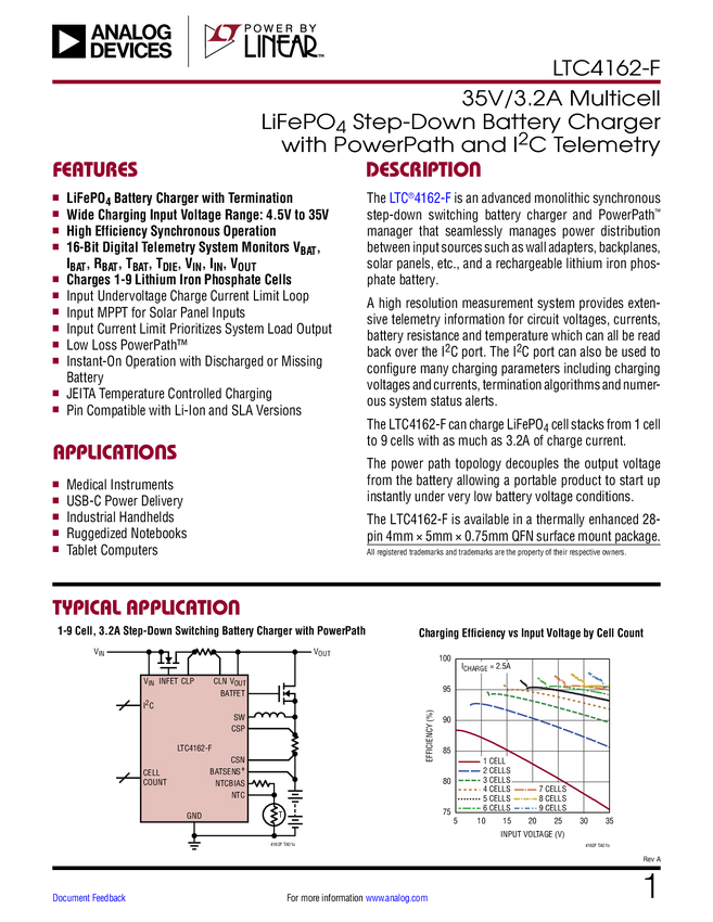 LTC4162-F 35V/3.2A Multi-Cell LiFePO Step-Down Battery Charger with PowerPath and IC...