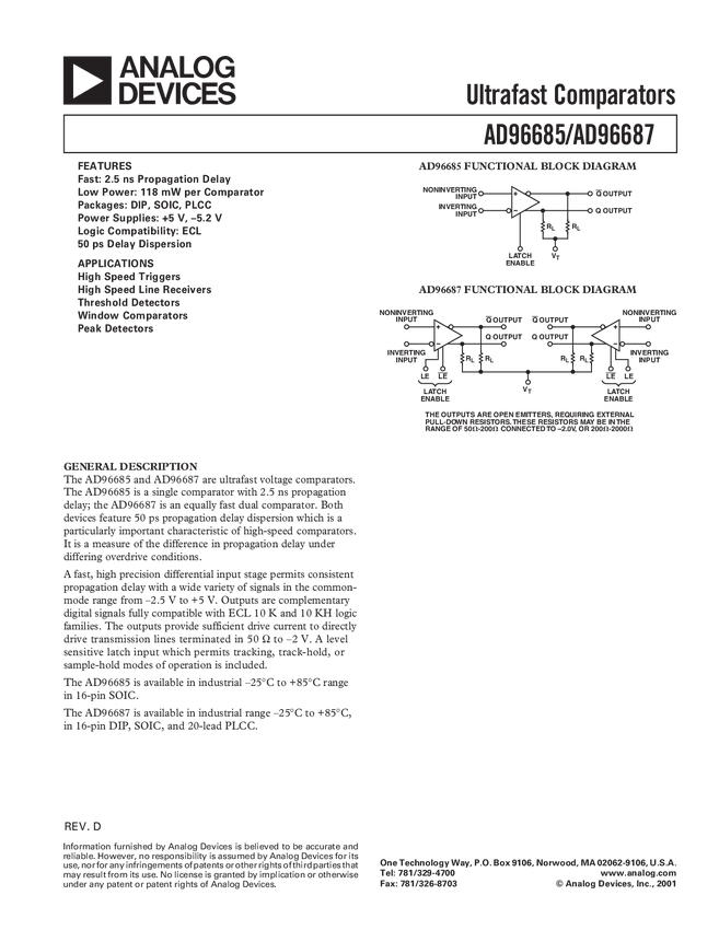 AD96685 Ultra Fast ECL Dual Comparator
