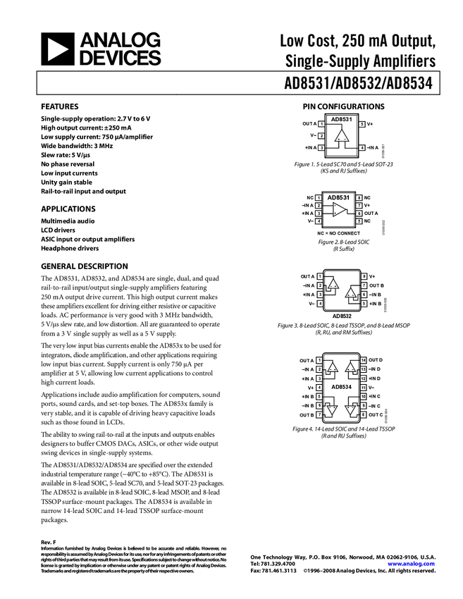 AD8531 250 A Output, Low Cost, Quad Single-Supply Op Amp