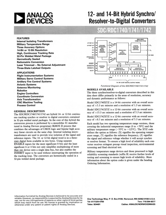 RDC1740 12-Bit Synchro-to-Digital Converter