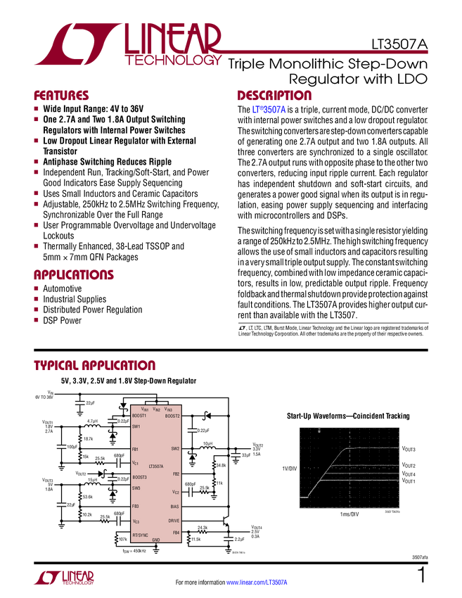 LT3507A Triple Monolithic Step-Down Regulator with LDO