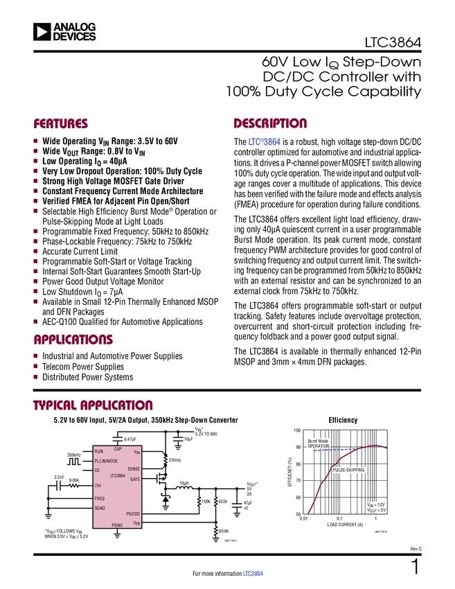 LTC3864 60V Low I Step-Down DC/DC Controller with 100% Duty Cycle Capability