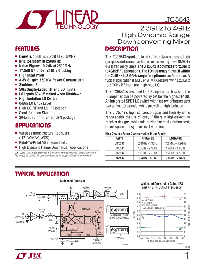 LTC5543 2.3GHz to 4GHz High Dynamic Range Downconverting Mixer