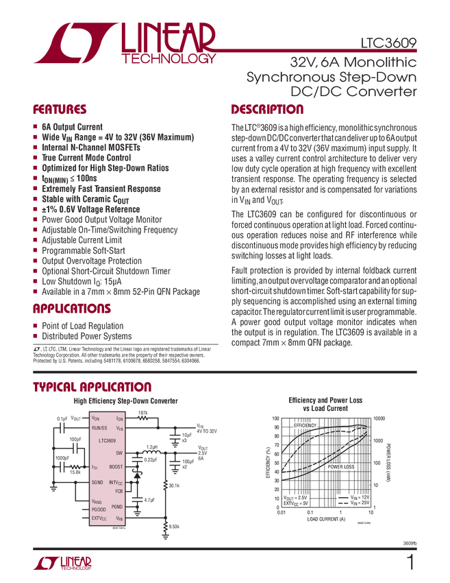 LTC3609 32V, 6A Monolithic Synchronous Step-Down DC/DC Converter
