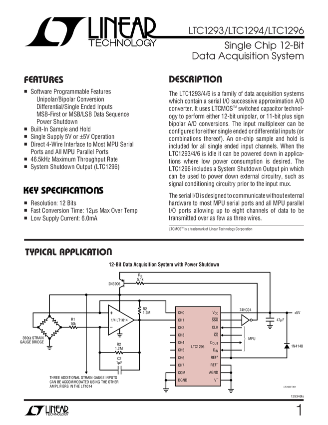 LTC1294 Single Chip 12-Bit Data Acquisition System