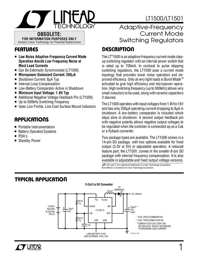 LT1500 Adaptive-Frequency Current Mode Switching Regulators