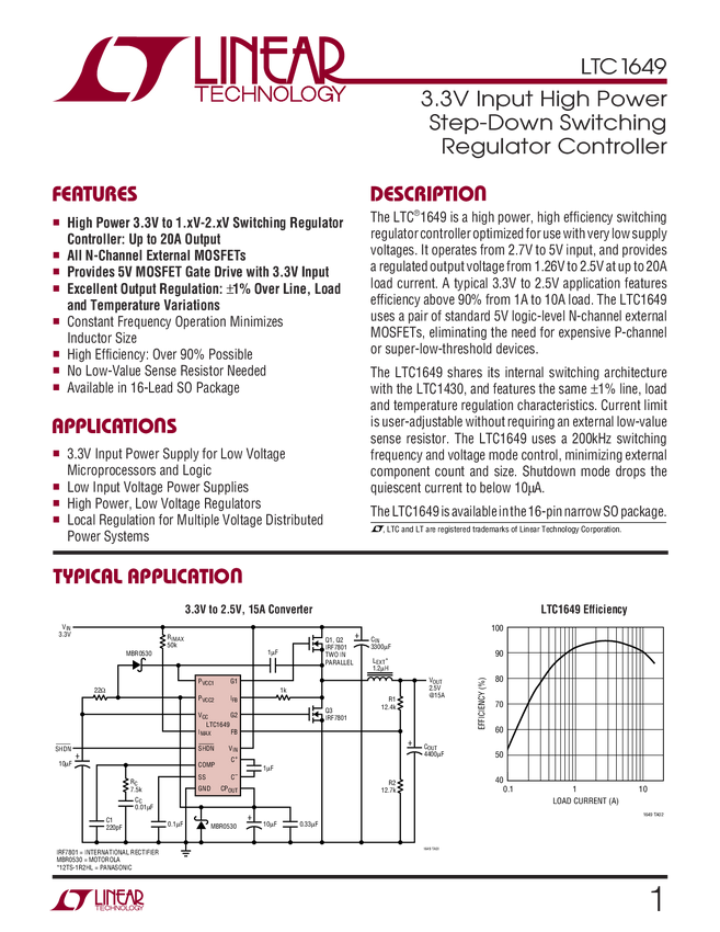 LTC1649 3.3V Input High Power Step-Down Switching Regulator Controller