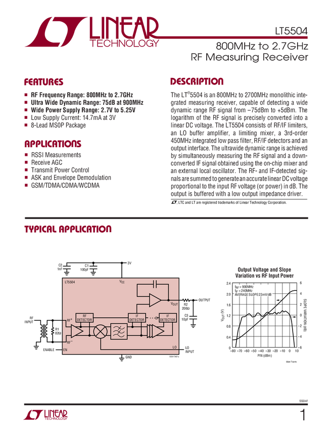 LT5504 800MHz to 2.7GHz RF Measuring Receiver
