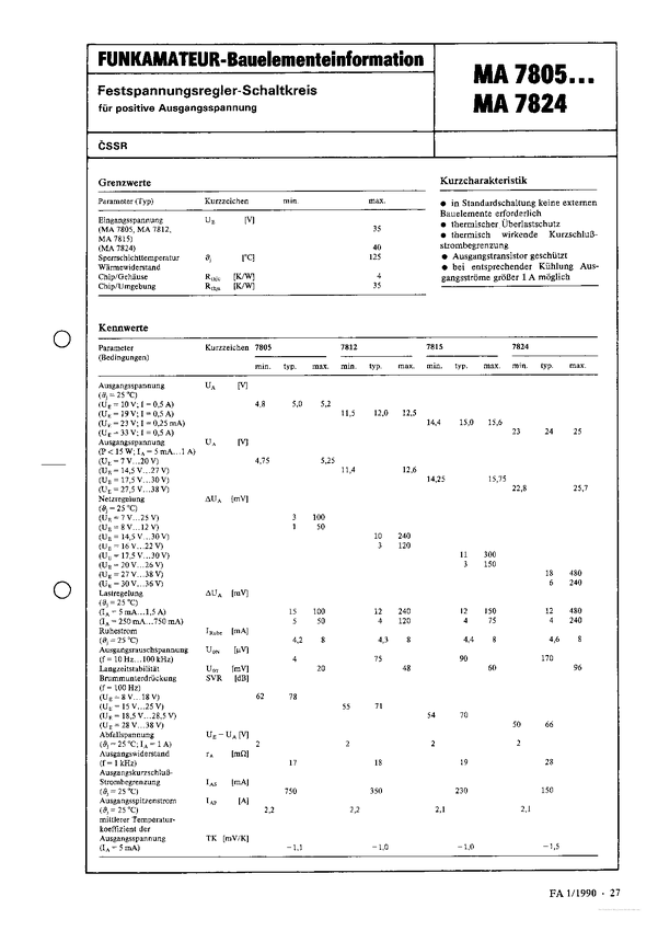 MA7812 Stabilizator; MA7812 / UL7512; liniowy; 12V; 1,5A; stały; TO3; THT; TESLA