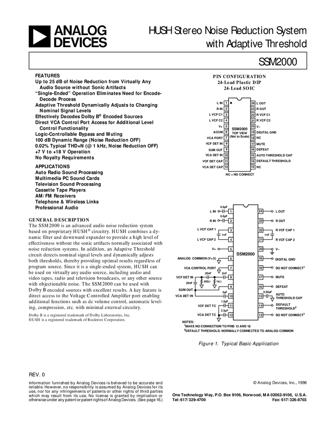 SSM2000 HUSH® Stereo Noise Reduction System with Adaptive Threshold