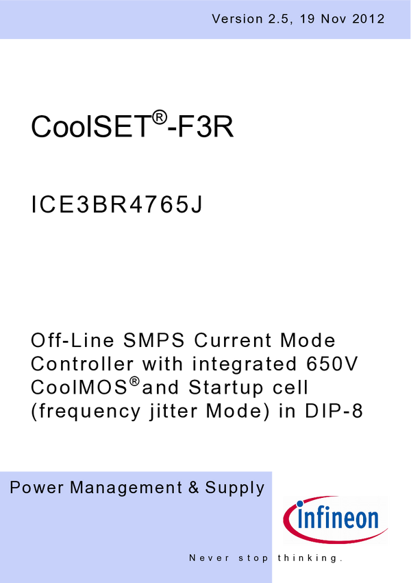 Układ scalony; ICE3BR4765JZ; przetwornica AC/DC; PMIC; 500mA; 650V; DIP8-7; THT; INFINEON; RoHS