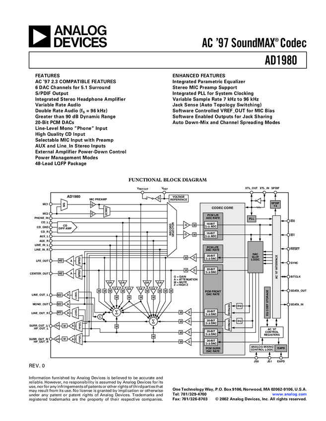 AD1980 AC'97 SoundMAX® Codec w/SPDIF w/EQ