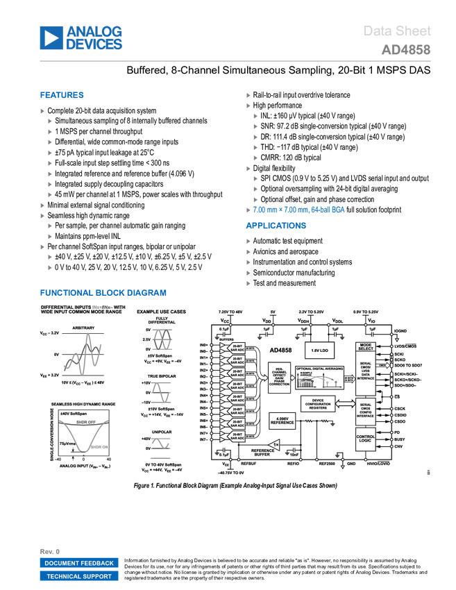 AD4858 Buffered, 8-Channel Simultaneous Sampling, 20-Bit 1 MSPS DAS