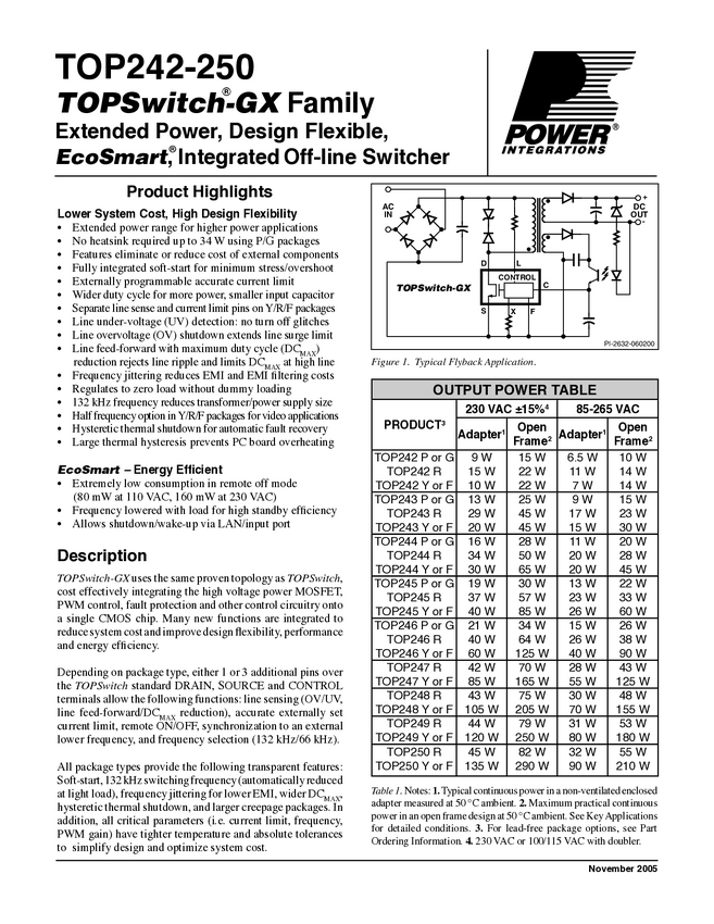 Układ scalony; TOP242PN; przełącznik analogowy; 720mA; 10W; 700V; 15R6; DIP8-7; THT; POWER INTEGRATIONS; RoHS