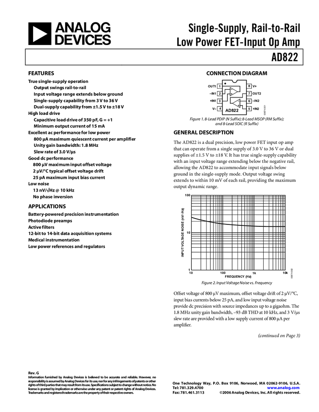 Układ scalony; AD822ARZ-REEL7; wzmacniacz operacyjny; 1,9MHz; 80dB; Kanały: 2; SO8; SMD; 2,5-15V / 5-30V DC; Analog Devices; RoHS