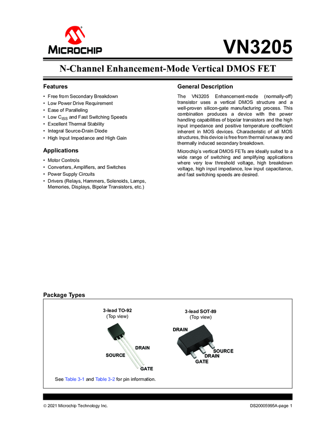 VN3205 N-Channel Enhancement-Mode Vertical DMOS FET Data Sheet