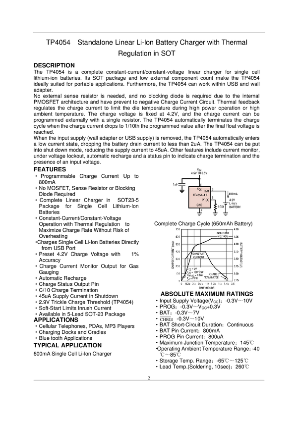 Układ scalony; TP4054-42; kontroler ładowania; 4,5-6,5V; Li-Lon battery charger; 4,2V; 800mA; -40+85*C; SOT23-5; SMD; RoHS