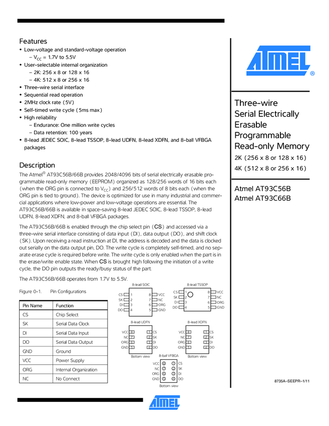 AT93C56B-SSHM Układ scalony; 93C56; pamieć: EEPROEM; Microwire; 256x8bit; 4,5-5,5V; 2MHz;...