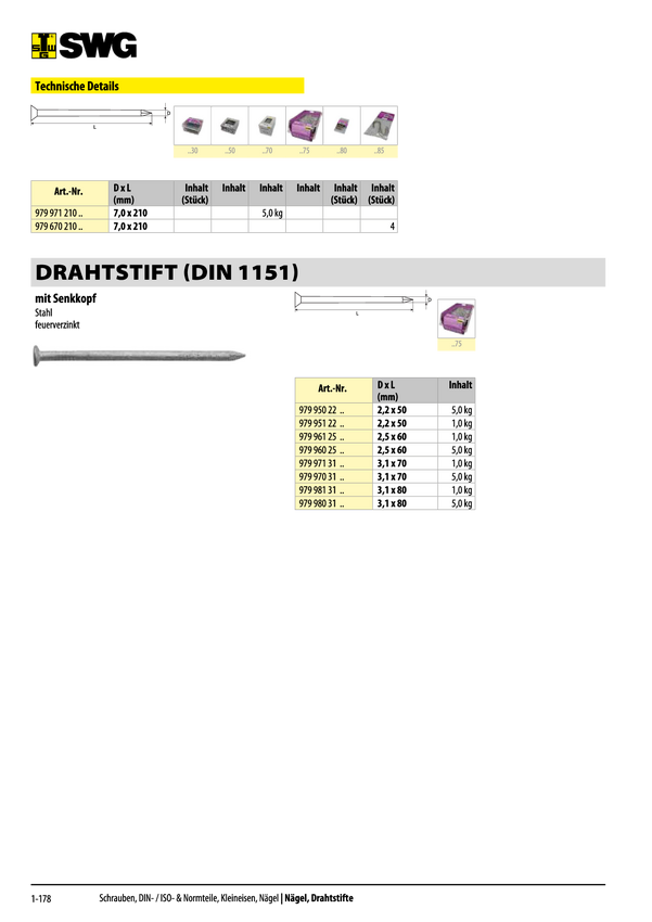 9799502275 Gwóźdź prosty SWG 9799502275 (Ø x D) 2.2 mm x 50 mm 2805 szt.