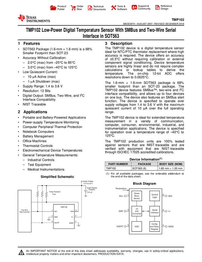 Układ scalony; TMP100NA/3K; IC; czujnik temperatury; -55+125°C; 1%; 2,7-5,5V; I2C; SMBus; 12bit; SOT23-6; SMD; TEXAS; RoHS