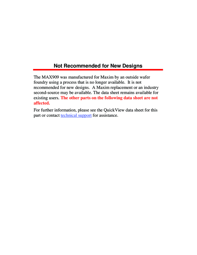 MAX908 Dual/Quad/Single, High-Speed, Ultra-Low-Power, Single-Supply TTL Comparator...