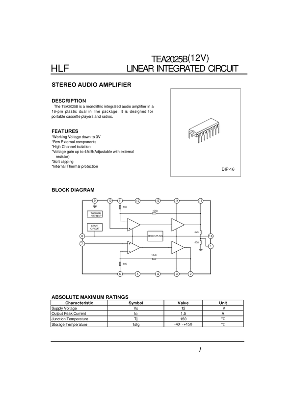 Układ scalony; TEA2025B; KA2206; wzmaniacz audio; 4,7W; 8Ohm; 3-12V DC; DIP16; THT; RoHS