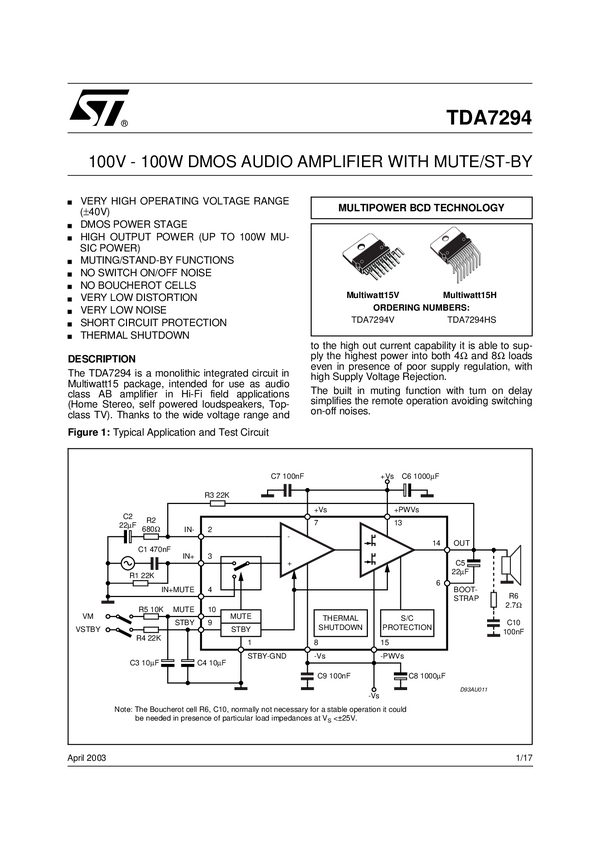 Układ scalony; TDA7294V; wzmacniacz audio; 100W; SQL15; THT; STMicroelectronics; RoHS