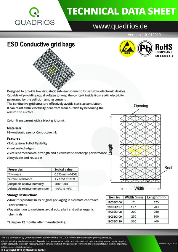 1903EC109 Torba ESD (D x S) 250 mm x 300 mm przewodzące Kod ESD C Quadrios